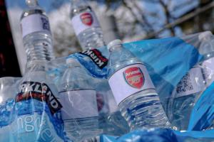 天王山矿泉水!曼城球迷球场外售卖贴阿森纳队徽的矿泉水,2镑1瓶