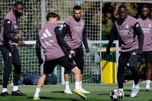 体育资讯04月13日讯 皇马官方今日晒出了训练照,姆巴佩回归训练,额头贴上了创可贴。